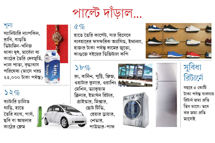 % বস্ত্র শিল্পকে কাপড় কিনতে আগে মেটানো কর ফেরতের সুবিধা দেওয়া হয়েছে। বছরে ৫ কোটি টাকা পর্যন্ত ব্যবসা করা সংস্থা তিন মাসে একটি রিটার্ন দিতে পারবে। উত্তরপূর্বের একাংশ ও বেশ কয়েকটি পাহাড়ি রাজ্যে বাধ্যতামূলক নথিভুক্তির সীমা বাড়িয়ে ২০ লক্ষ টাকা করা হয়েছে। অর্থাৎ ব্যবসার অঙ্ক তার কম হলে জিএসটিতে নাম না লেখালেও চলবে। অনেকের মতে ইথানলে কর কমায় পেট্রল ডিজেলের দাম নামতে পারে।