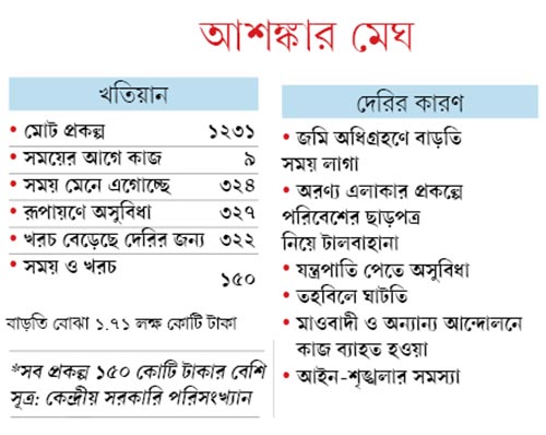 সময় মেনে এগোচ্ছে না সারা দেশে বেশ কিছু পরিকাঠামো প্রকল্প। আর, ৩২২টি এমন প্রকল্পের জেরে ২০১৭-র মার্চ পর্যন্ত হিসেবে খরচের বহর বেড়েছে ১.৭১ লক্ষ কোটি টাকা। সরকারি সূত্রে এই হিসেব দিয়ে জানানো হয়েছে, প্রতিটি প্রকল্পেই খরচ ধরা হয়েছিল ১৫০ কোটি টাকা বা তারও বেশি।