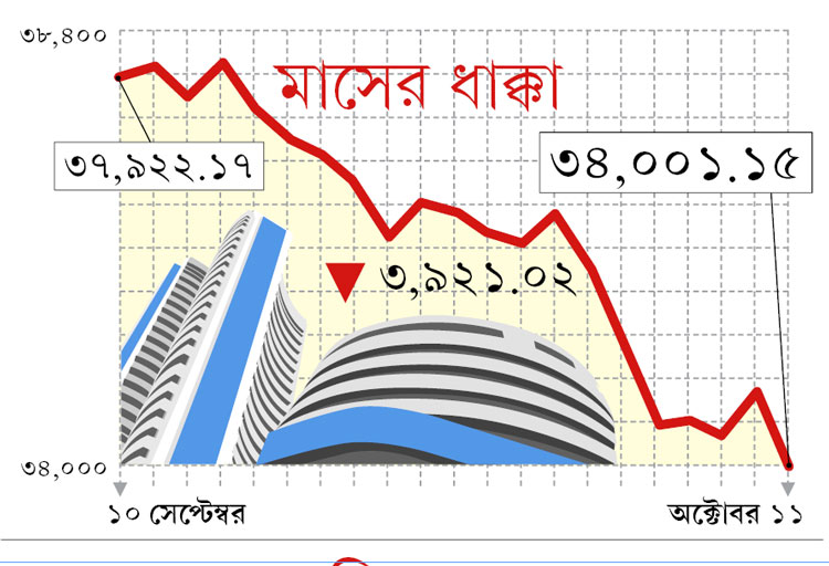 দেকো সিকিউরিটিজের কর্ণধার অজিত দে জানান, পতনের পটভূমি তৈরিই ছিল। ভারতে লেনদেন শুরু হয় সকাল ৯.১৫-এ। সিঙ্গাপুরে ভারতীয় সময় সকাল সাতটা নাগাদ। সেখানে নথিভুক্ত ‘এসজিএক্স নিফ্টি’ শুরুতেই প্রায় ২৭০ পয়েন্ট নামে। বাজার খুলতেই যার বিরূপ প্রভাব পড়ে।