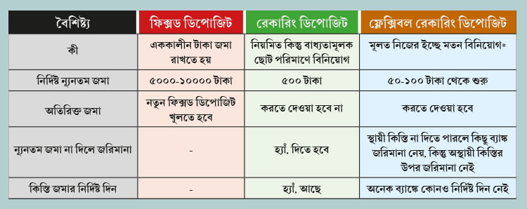 ভাল করে খুঁটিয়ে দেখলে বুঝতে পারবেন যে, যাঁদের মাসিক আয় আসার কোনও বাঁধা দিন নেই, তাঁদের জন্যে 'ফ্লেক্সিবল' রেকারিং ডিপোজিট একটা আকর্ষণীয় ব্যবস্থা।