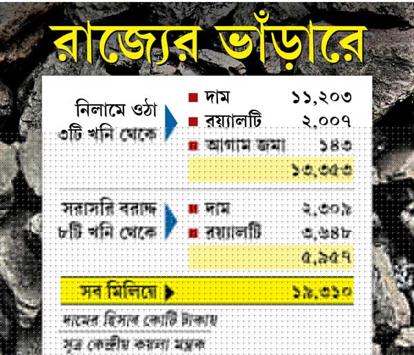এর পাশাপাশি, ৮টি খনি সরাসরি রাজ্য বিদ্যুৎ উন্নয়ন নিগমকে মঞ্জুর করা হয়েছে। ওই খনিগুলির দাম বাবদ রাজ্য পাবে ২,৩০৯ কোটি টাকা। তা ছাড়া, ওই সব খনি থেকে যে কয়লা উঠবে, তার রয়্যালটি হিসেবেও রাজ্য সরকারের ঘরে আসবে ৩,৬৪৮ কোটি।