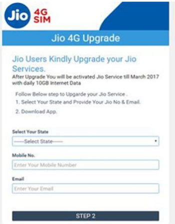 বেশ কিছু দিন ধরেই এই মেসেজটি ফেসবুক আর হোয়াটসঅ্যাপে ঘুরছে। মেসেজটিতে লেখা, জিও-র রোজকার ডেটা লিমিট বাড়াতে হলে আপডেট করুন। সঙ্গে একটি লিঙ্কও দেওয়া। এই লিঙ্ক-এ গিয়েই আপডেট করতে হবে। সেই ঠিকানায় ক্লিক করলেই একটি নতুন পেজ খুলছে। সেখানে গ্রাহকের ই-মেল আইডি, ফোন নম্বর সহ বেশ কিছু তথ্য জানতে চাওয়া হচ্ছে। তারপর আপডেট সফল করার জন্য কম করে ১০টি হোয়াটসঅ্যাপ গ্রুপে বা ফেসবুকে লিঙ্কটি শেয়ার করার নির্দেশ দেবে।