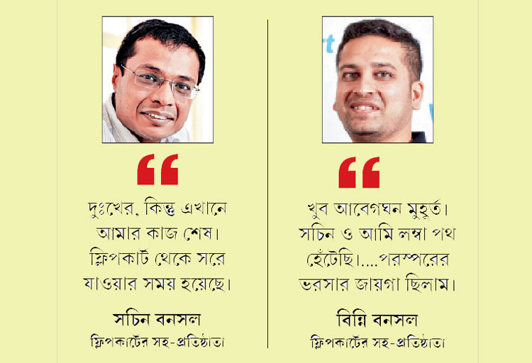 এক দিকে, পাশাপাশি লম্বা পথ হেঁটে আসার স্মৃতিমেদুরতা। আর অন্য দিকে, বিক্ষোভের গনগনে আঁচ। এমনকী সরকারের বিরুদ্ধে বিশ্বাসঘাতকতার অভিযোগও। চুম্বকে এটিই সম্ভবত ফ্লিপকার্ট হাতে নিতে ওয়ালমার্টের ঘোষণার পরের চব্বিশ ঘণ্টা।