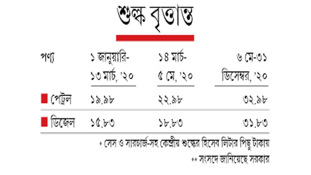 এ দিন সংসদেই অর্থপ্রতিমন্ত্রী অনুরাগ ঠাকুর বলেছেন, এক বছরে পেট্রল-ডিজেলে কেন্দ্রীয় শুল্ক লিটারে বেড়েছে যথাক্রমে ১৩ ও ১৬ টাকা। পরিসংখ্যান বলছে, তেল রেকর্ড গড়ার প্রভাব পড়েছে পণ্য পরিবহণে। ফলে চড়ছে মূল্যবৃদ্ধি। সে কথা মেনেছেন ঠাকুর। বলেছেন, গত বছর জানুয়ারি থেকে এ বছর জানুয়ারি পর্যন্ত গাড়িতে ব্যবহৃত পেট্রলের দাম বাড়ায় মূল্যবৃদ্ধি ৭.৩৮% থেকে বেড়ে হয়েছে ১২.৫৩%। ডিজেলে ৬.৪৪% থেকে ১২.৭৯%। একাংশের মতে, তেলে শুল্ক থেকে বিপুল আয় করে রাজ্যগুলিও। ফলে তাতে জিএসটি চায় না তাদের অনেকে। সে জন্যই কেন্দ্রীয় মন্ত্রীরা কর কমানোর বল ঠেলছেন রাজ্যের ঘাড়ে। নাকাল হচ্ছেন মানুষ।