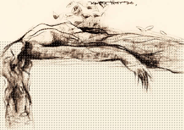একটি চারকোল-ড্রয়িং-এ তিনি রূপ দেন শায়িতা এক নারীকে। নিঃসাড়ে শুয়ে থাকে সে। মাথাটি এলিয়ে পড়েছে শয্যার উপর থেকে। বিস্রস্ত কেশরাশি শূন্যে ঝুলে আছে। তাঁর শরীরের উপর এবং চুলে ছড়িয়ে আছে কিছু ঝরা পাতা। আলো-ছায়ার দ্যোতনার মধ্য দিয়ে ঘুমন্ত মানবী-শরীর গড়ে ওঠে যেখানে, সেই নগ্নতায় শিল্পী সঞ্চারিত করেন অমোঘ এক প্রতিকারহীন শূন্যতা, যে শূন্যতা এই সময়েরই অনিবার্য পরিণতি।