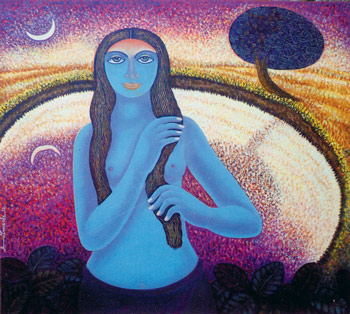 দীপঙ্কর মুখোপাধ্যায়ের ছবির কল্পরূপাত্মক প্রকাশভঙ্গিও এরকম সমন্বয়েরই ফসল। ‘প্লেইং ইন ক্লাউড’ শীর্ষক অ্যাক্রিলিকে মেঘলোকে প্রেমের খেলায় মগ্ন দুই মানব-মানবী। বাইরের বাস্তব নয়, চেতনার অন্তর্লীন বাস্তবকে রূপ দিতে চান তিনি। মলয় দত্তের ‘অন সার্চ অব পিস’ শীর্ষক ছবিতে দুর্গা ও যিশুর রূপায়ণ। প্রচলিত রূপরীতির বাইরে নতুন কোনও পরিসর তৈরি করতে পারেন নি তিনি।