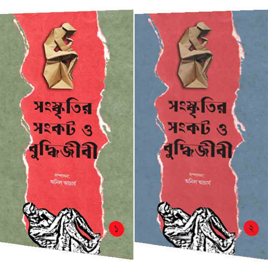 সঙ্কলনের একটা মূল চিন্তার সূত্র রয়েছে— সংস্কৃতির সঙ্কট। যদিও, দুই খণ্ডের ভূমিকায় পশ্চিমবঙ্গের তথা বাঙালি বুদ্ধিজীবীর বর্তমান অবস্থান আর রাজনীতি নিয়ে খানিক চর্চা করলেও, ‘সংস্কৃতি’ বলতে সম্পাদক ঠিক কী বুঝিয়েছেন তা খুব স্পষ্ট হয় না। ‘সংস্কৃতি’ বা ‘কালচার’ শব্দটি ব্যুৎপত্তিগত ভাবেই যথেষ্ট জটিল, ব্যাপ্ত, বহুস্বরী। তাই সঙ্কলনের মূল সুর গড়ে দিতে ঠিক কোন কোন স্বর অর্থাৎ কোন কোন দিক নিয়ে চর্চা হতে চলেছে এবং কোন কোন যুক্তিতে, সেই আলোচনা খানিক থাকলে ‘সঙ্কট’ শব্দটির ব্যবহারগত তাৎপর্য বিষয়ে আরও একটু নিশ্চিত হতে পারতেন উৎসাহী পাঠক। অনিশ্চয়তার দু’টি উদাহরণ দেব। সঙ্কলনদ্বয়ের শিরোনাম হিসাবে ‘সংস্কৃতির সংকট’ আর দ্বিতীয় খণ্ডের একটি পর্যায়ের শিরোনাম হিসাবে ‘সংস্কৃতিচর্চা’, এই দুইয়ের ‘সংস্কৃতি’র ভেদ-অভেদ নিয়ে সম্পাদকীয় মতামত জানতে মন চায়। তেমনই, দু’টি খণ্ডে যে বর্গগুলির সাপেক্ষে প্রবন্ধগুলি বিন্যস্ত হল, সেই বর্গবিন্যাসের যুক্তিগুলি কী কী, সে প্রশ্নও শেষাবধি রয়ে যায়। যেমন, ‘কমিউনিস্ট’ আর ‘ছিন্নমূল’ এই দুই ‘ক্যাটেগরি’র বুদ্ধিজীবী কেন একই পঙ্ক্তিতে এলেন— এই ধরনের সম্পাদকীয় আলোচনা নতুন প্রজন্মের পড়ুয়ার কাছে গুরুত্বপূর্ণ বলে মনে হয়।