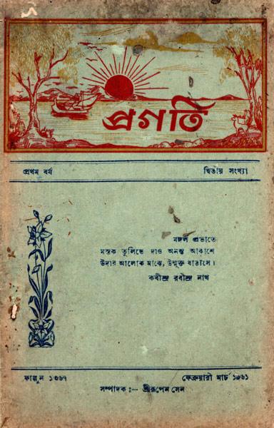 ১৯৬১ সালের জানুয়ারি মাসে প্রগতি প্রথম বেরোয়, এবং জাতীয়করণ পর্যন্ত মাত্র তিন বছর চলেই তা বন্ধ হয়ে যায়। জাতীয়করণে ভারতীয়দের অধিকার খর্ব হওয়ার এও এক নমুনা। প্রতি সংখ্যায় কবিতা, গল্প, প্রবন্ধ, অনুবাদের সঙ্গে থাকত ধর্মীয় উপদেশ, ভারত পাকিস্তান বর্মার খবর, শ্রদ্ধার্ঘ্য, খেলার খবর, স্থানীয় বাঙালিদের বিয়ের খবরও।