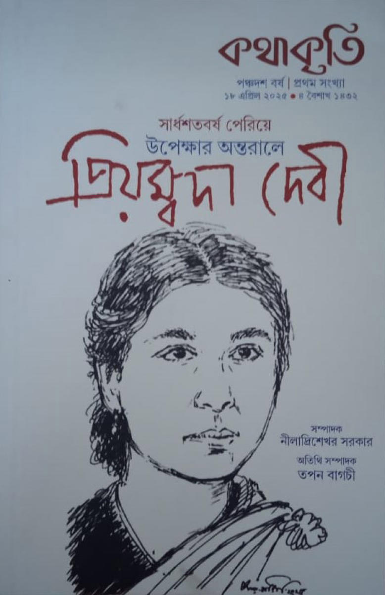 অখণ্ড বঙ্গে পাবনার বিখ্যাত জমিদার ছিলেন চৌধুরীরা, এই বংশেরই আশুতোষ, যোগেশচন্দ্র ও বিশেষ করে প্রমথ চৌধুরী স্ব-স্ব ক্ষেত্রে স্বনামধন্য। এঁদেরই সহোদরা প্রসন্নময়ী দেবী, তাঁরই কন্যা প্রিয়ম্বদা— জন্ম যশোরে, ১৮৭০ সালে। প্রিয়ম্বদাকে নিয়ে বাংলায় বইয়ের সংখ্যা হাতে গোনা, ‘দেড়শো বছর পেরিয়েও এই কবিকে নিয়ে কোনো সাহিত্যপত্রিকা কোনো বিশেষ কাজ করেনি’, সেই অভাবই পূরণ করল এই পত্রিকা-সংখ্যাটি। তিনটি ভাগে বিন্যস্ত লেখাগুলি: ‘অনুসন্ধানের আলোয় প্রিয়ম্বদা’ অংশে রবীন্দ্রনাথ ব্রজেন্দ্রনাথ বন্দ্যোপাধ্যায় প্রমথনাথ বিশী প্রমুখের কলমে প্রিয়ম্বদা-কৃতির পর্যালোচনা পুনর্মুদ্রিত। প্রথমাংশে এই সময়ের প্রবীণ-নবীন আলোচকেরা মূল্যায়ন করেছেন তাঁর কবিতার নানা দিক-আঙ্গিক, রবীন্দ্র-সংযোগও। ‘অগ্রন্থিত’ অংশে পড়া যাবে ওঁর উপন্যাস পঞ্চুলাল, আরও কবিতা, কাব্যনাটিকা, ভ্রমণকাহিনি, চিঠি।
