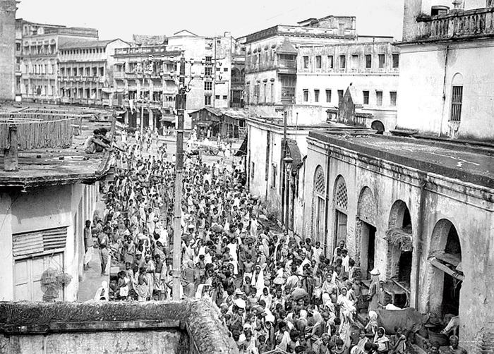 খিদের কত বিচিত্র রূপ! উনিশশো তেতাল্লিশের দুর্ভিক্ষের অনেক ছবি দেখেছি আমরা, ক্ষুধাশীর্ণ ক্লিষ্টতার সে সব ছবির দিকে চোখ তুলে তাকাতে ভয় লাগে, যন্ত্রণা হয়, এমনকী বিস্ময়ে স্তব্ধ হতে হয়। পাশের ছবিটি স্তব্ধ করে দেওয়ার মতো। সারে সারে মানুষ কলকাতার রাজপথে। বুভুক্ষু মানুষ আরও একটু বিশৃঙ্খল হতেই পারত। কিন্তু হয়নি। মৃত্যুর থেকে এক পা পিছিয়ে থেকেও এই দলবদ্ধ শৃঙ্খলা চুপ করিয়ে দেয়। যে প্রবলতম যন্ত্রণা অভিযোগ বা বিক্ষোভ অতিক্রম করে যায়, তার সামনে আর কোনও অনুভব থাকে না, নীরবতা ছাড়া।
