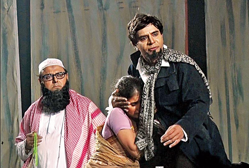 প্রযোজনার একমাত্র আকর্ষণ শয়তানের ছাওয়াল চরিত্রে গৌতম হালদারের চিরাচরিত অভিনয়। সেই তিন দশক আগের একই ম্যানারিজম, সেই সার্কাসের ক্লাউনবৎ অঙ্গসঞ্চালন, সেই যাত্রাসুলভ উচ্চারণ শেষে দন্তব্যাদান হাসি-টানা আড়াই ঘণ্টা দর্শক উপভোগ্য মনোরঞ্জনের সমস্তই তিনি একা দিয়ে গেলেন। সহ অভিনেতাদের ততোধিক জড়তা, জন-গণ-মন গাওয়ার ভঙ্গিতে দাঁড়ানো, খান সেনাদের বাংলায় সংলাপ বলিয়ে উর্দু-উর্দু দুয়ো দেওয়া, চার-পাঁচটি কাপড়ের সেটকে এধার ওধার করে বানানো গৃহদৃশ্য। হঠাৎ হঠাৎ বিউগল বেজে ওঠা, ক্বচিত দু’-একটা আলোর বিচ্ছিন্ন বিচ্ছুরণ, এ সমস্ত দেখে দর্শক চিন্তামুক্ত নিরাপদ নিশ্চিন্তিতে ক্ল্যাপ দিতে দিতে বেরিয়ে এলেন।