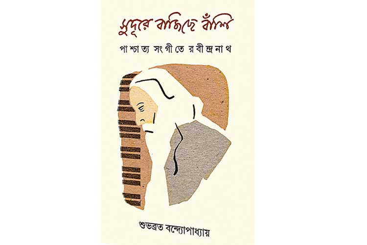 রবীন্দ্রনাথ এমন এক স্রষ্টা যিনি নিত্যই নব নব ভাবে উদ্ভাসিত। তাঁর সৃজন নিয়ে দিগন্তপ্রসারী চর্চার নতুন নতুন দিক নিয়ত উন্মোচিত হয়ে চলেছে। রবীন্দ্রনাথের গানে পাশ্চাত্য সঙ্গীতের প্রভাব বিষয়টা প্রাথমিক ভাবে ইন্দিরা দেবী চৌধুরানীর রবীন্দ্রসংগীতের ত্রিবেণীসংগম-এর সৌজন্যে এবং পরবর্তী গবেষণায় আমাদের অনেকটাই জানা। কিন্তু খুবই কম আলোচিত একটি বিষয় হল রবীন্দ্রসৃষ্টি কী ভাবে পাশ্চাত্য সঙ্গীতে জায়গা করে নিয়েছে, কী ভাবে বিদেশি নানা কমপোজ়ার রবীন্দ্ররচনা অবলম্বনে সুরসৃষ্টি করেছেন। এই স্বল্প-আলোচিত বিষয়ে বহু শ্রম ও সনিষ্ঠ গবেষণালব্ধ একটি বই সম্প্রতি প্রকাশিত: সুদূরে বাজিছে বাঁশি। এ সম্পর্কে একেবারেই যে কাজ হয়নি তা নয়, আলোচ্য বইটির শুরুতেই কৃতজ্ঞতা স্বীকারে তা জানিয়েও দিয়েছেন লেখক শুভব্রত বন্দ্যোপাধ্যায়। যথাযথ ভাবেই উল্লেখ করেছেন তপন রায়, শুদ্ধশীল সেন, রেবা সোমের লেখার কথা। সন্দেহ নেই, বর্তমান গ্রন্থে নির্দিষ্ট কয়েক জন কমপোজ়ারের কাজের সূত্রে বিষয়টিকে আরও অনুপুঙ্খ ভাবে বিস্তৃত রূপে ধরার সযতন প্রয়াস করেছেন লেখক। পাশ্চাত্য ধ্রুপদী সঙ্গীতের রসগ্রাহী শ্রোতা শুভব্রত মাত্র পাঁচ বছর আগে এ সম্পর্কে উৎসাহী হন। তার পর নানা সিডি, জোড়াসাঁকোয় আয়োজিত এক অনুষ্ঠান এবং উপরি-উল্লিখিত তিন জনের লেখা পড়ে আরও অনুসন্ধানে ব্রতী হন। সেই সচেতন অন্বেষণ-গবেষণার ফল আলোচ্য গ্রন্থটি।