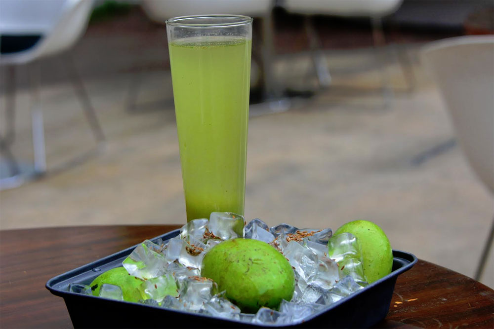 আগুন গরমে তেতে পুড়ে ঠান্ডা ঘরে ঢুকতেই সামনে এল সুদৃশ্য কাঁচের গ্লাসে বরফ ঠাসা কনকনে ঠান্ডা সবজেটে এক শরবত। দেখে খুব একটা আহামরি মনে না হলেও এক চুমুকেই তৃষ্ণার্ত প্রাণটা জুড়িয়ে যাবে। কাঁচা আমের সঙ্গে আছে টাটকা পুদিনার স্নিগ্ধ গন্ধ। আর টাটকা জিরে ভাজার মিলমিশে আমের শরবত প্রাণ মন ঠান্ডা করার সঙ্গে সঙ্গে খিদের বোধও জাগিয়ে তুলবে।
