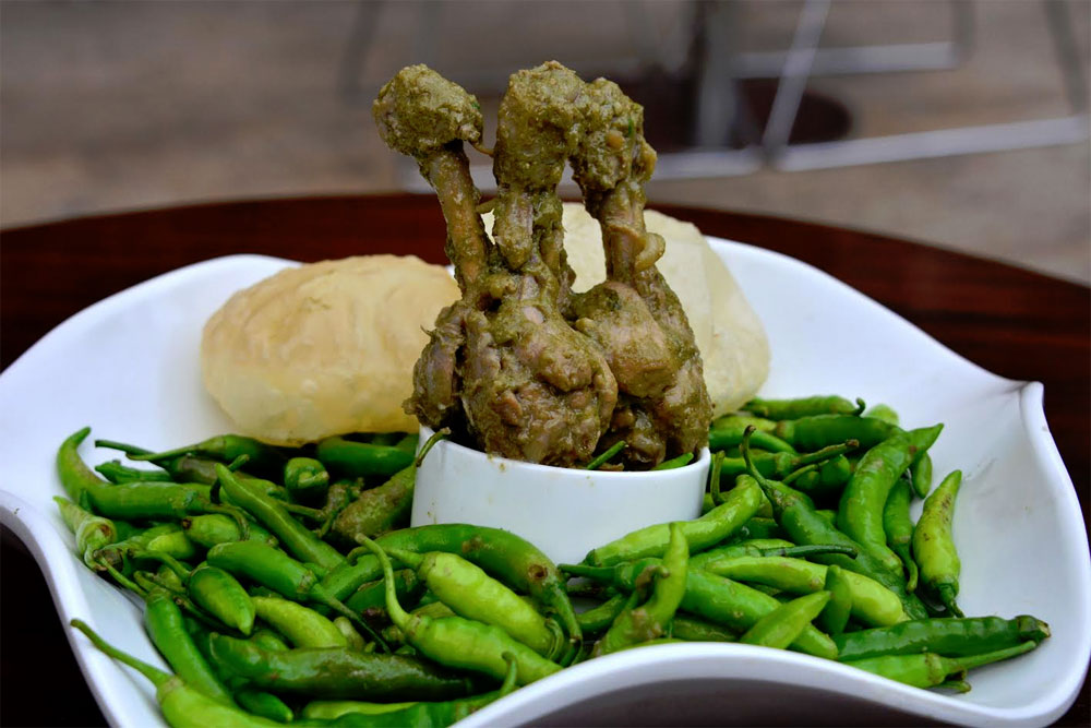 কাঁচা লঙ্কাও খাবেন এক গাদা অথচ ঝাল লাগবে না। এমন সোনার পাথর বাটি বানানো শেফ কৌশিকের পক্ষেই সম্ভব। ঘিয়ে ভাজা মুরগির টুকরোর পরতে পরতে মৃদু কাঁচা লঙ্কার সুবাস। মিহি কাজুবাদামের স্বাদে ভরা এই চিকেন প্রিপারেশনে আছে টাটকা জিরে বাটার স্বাদ আর অপূর্ব গন্ধের মিলমিশ। এক বার খেতে শুরু করলে থামা মুশকিল। যারা চিকেন অপছন্দ করেন তারাও কাঁচা লঙ্কা মুরগির অনবদ্য স্বাদে মোহিত।