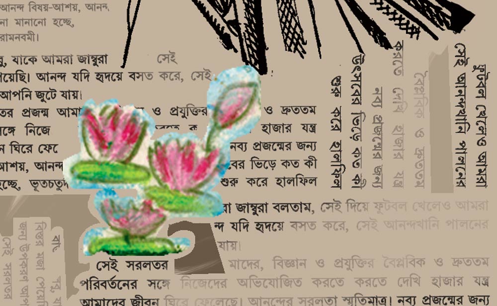 সেই সরলতর প্রজন্ম আমাদের, বিজ্ঞান ও প্রযুক্তির বৈপ্লবিক ও দ্রুততম পরিবর্তনের সঙ্গে নিজেদের অভিযোজিত করতে করতে দেখি হাজার যন্ত্র আমাদের জীবন ঘিরে ফেলেছে। আনন্দের সরলতা স্মৃতিমাত্র। নব্য প্রজন্মের জন্য আনন্দ বিষয়-আশয়, আনন্দ উত্‌সবমুখরতা। নতুন নতুন উত্‌সবের ভিড়ে কত কী না মানানো হচ্ছে, ভূতচতুর্দশী ভুলে হ্যালোউইন থেকে শুরু করে হালফিল রামনবমী।