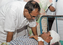 সোমবার সিউড়ি সদর হাসপাতালে জখম দলীয় কর্মীকে দেখে গেলেন প্রতিনিধি দলের