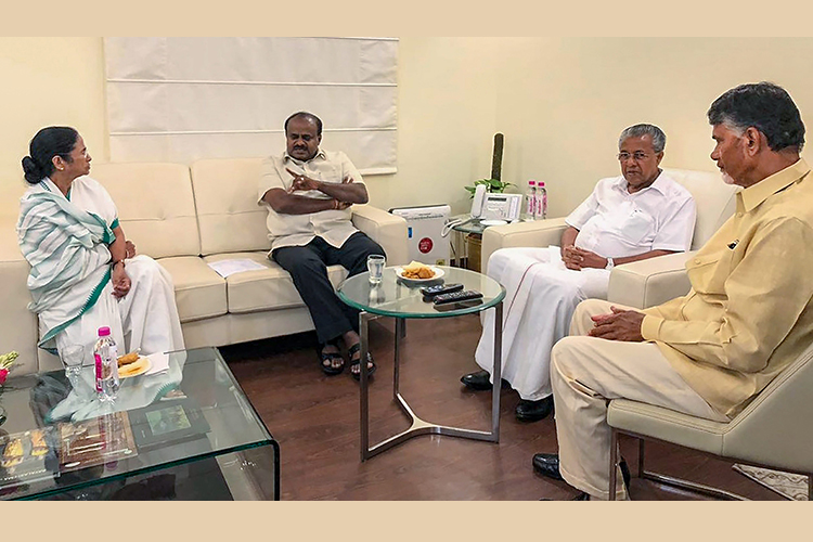 মমতা বন্দ্যোপাধ্যায়, কুমারস্বামী, আই এম বিজয়ন ও চন্দ্রবাবু নায়ডু। —ফাইল চিত্র।