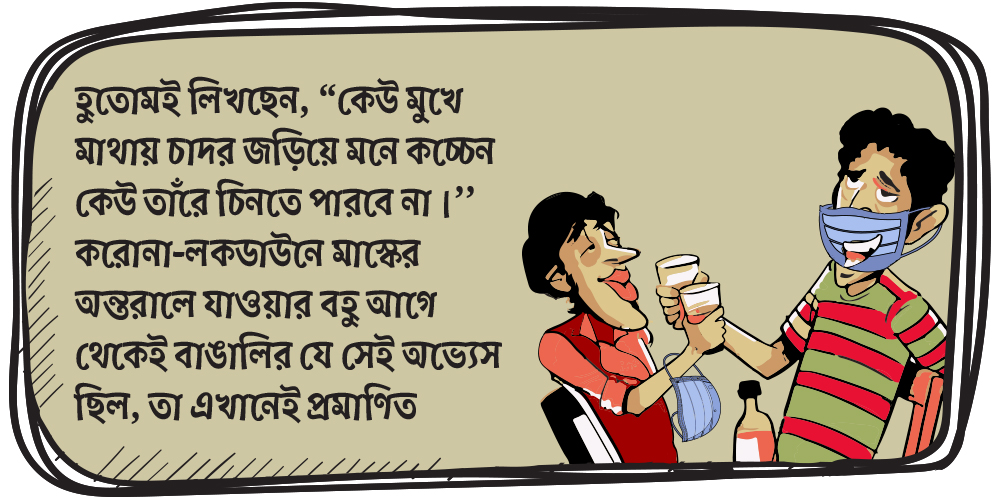 বাঙালির জীবনে মদ যদি এতটাই ‘স্বাভাবিক’ হয়ে থাকে, তা হলে তাকে ঘিরে ট্যাবুর রমরমা শুরু হল কবে থেকে? এই প্রশ্নের উত্তর লুকিয়ে রয়েছে ইংরেজ শাসন কায়েম হওয়ার কালে। ১৯ শতকে একদিকে যেমন বাঙালি ব্র্যান্ডি বা শেরি খেতে শিখছে, তেমনই একই শাসনের উল্টো পিঠে ভিক্টোরীয় নৈতিকতায় সে তার বিরোধিতাও করছে। মদ্যপান বিরোধী কর্মকাণ্ডের পাশাপাশি ‘সধবার একাদশী’-র নিমচাঁদরাও ছিল, একথা ভুলে গেলে চলবে না। হুতোম তাঁর নকশায় লিখছেন—“আবগারীর আইন অনুসারে মদের দোকানের সদর দরজা বন্ধ হয়েচে অথচ খদ্দের ফিচ্চে না”। এ ছবি তো বাংলার পরবর্তী ইতিহাসে নৈমিত্তিক হয়ে দাঁড়ায়। হুতোমই লিখছেন, “কেউ মুখে মাথায় চাদর জড়িয়ে মনে কচ্চেন কেউ তাঁরে চিন্তে পারবে না”। করোনা-লকডাউনে মাস্কের অন্তরালে যাওয়ার বহু আগে থেকেই বাঙালির যে সেই অভ্যেস ছিল, তা এখানেই প্রমাণিত। হুতোম মদ খেয়ে বাড়াবাড়ির এবং মদ নিয়ে বাড়াবাড়ির যে ছবি এঁকে গিয়েছেন, তাকে আজও বাঙালি টপকাতে পেরেছে বলে মনে হয় না। বাবুর বাগানবাড়িতে মদ-মোচ্ছবের যে বর্ণনা উনিশ শতকের নকশা সাহিত্যে রয়েছে, তা আজকের সুরাপ্রেমীরা ভাবনাতেও আনতে পারবেন না। হুতোমের ভাষ্যকার অরুণ নাগ মশাই তাঁর ‘সেকালের নেশা’ নামের এক নিবন্ধে একটা ফর্দ পেশ করাছিলেন। তাতে হেন নেশার বস্তু নেই যে ছিল না। মদ-গাঁজা-চন্ডু-চরস তো বটেই। পাঁড় নেশাখড়দের পেড়ে ফেলার জন্য ‘নডেলাম’ নামের এক ওষুধ পর্যন্ত ছিল সেই তালিকায়। হুতোমের সাক্ষ্যে মদ খেয়ে বাড়াবাড়ির বর্ণ্নাও তো কম নেই। দুর্গামূর্তির সিংহ সরিয়ে মাতাল সিঙ্গীবাবুর নিজেই সিংহ হয়ে বসার গল্প কে ভুলতে পেরেছি। অথবা বৈষ্ণব গোঁসাইকে পাকড়ে কৃষ্ণ-বলরামের মদ্যপানের রেফারেন্স দিয়ে নাস্তানাবুদ করার কাহিনি তো হুতোমই লিখে গিয়েছেন। তবে সব থেকে জবরদস্ত বোধ হয় মাতাতলের যুক্তিবোধ সম্পর্কে হতোমের ধরতাই। কালী বড় না কৃষ্ণ বড় এই নিয়ে তর্কের মীমাংসা ছিল এই প্রকার—কালীর ছেলে কার্তিক, তাঁর বাহন ময়ূর আর সেই ময়ূরের পুচ্ছই কৃষ্ণ ধারণ করেন মাথায়। সুতরাং কালীর কাছে কৃষ্ণ লাগেন না। এই সব কাহিনিকে প্রলাপ বলে উড়িয়ে দেওয়া যায় সহজেই। কিন্তু তাতে সুরাপায়ীদের কিছু যায় বা আসে না। মদিরা-বিধুর সেই জগতের যুক্তিকাঠামো একেবারেই আলাদা। মদ্যপানের বিরোধীরা কোনওদিনই তার হদিশ পাবেন না।