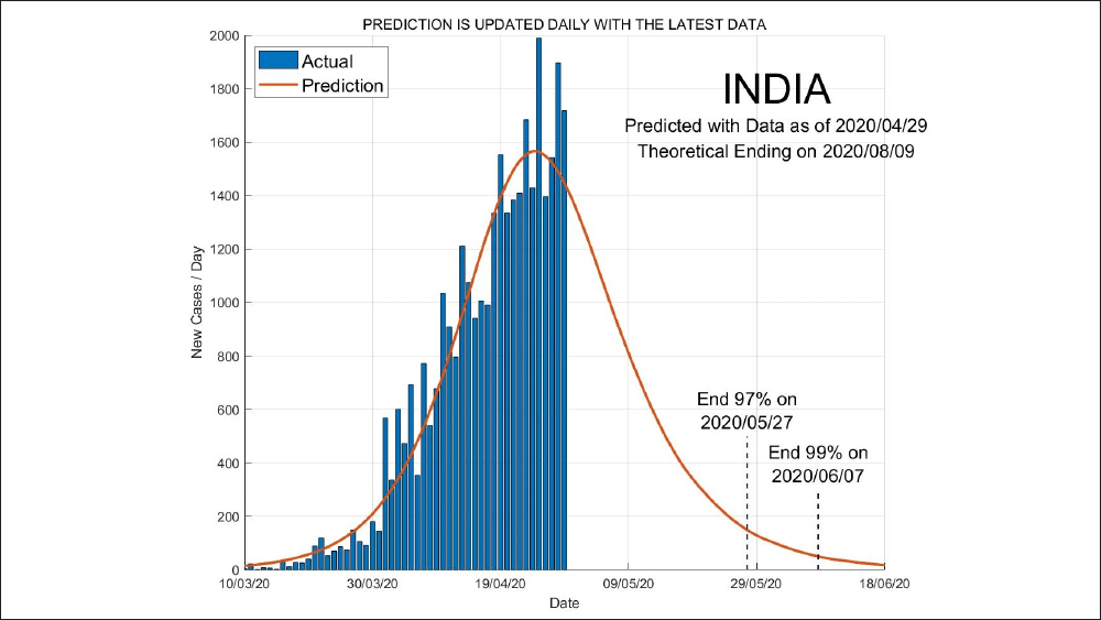 এখানে বলা হচ্ছে ভারতের ৯৭ শতাংশ সমস্যা মিটে যাবে মে মাস শেষ হওয়ার আগেই, ৯৯ শতাংশ সমস্যা মিটবে জুনের প্রথম সপ্তাহে। আর ছবিতে নেই, কিন্তু একটা সারণিতে বলা আছে পুরোপুরি ঝামেলা মিটতে অগস্টের প্রথম দিন দশেক। অর্থাৎ আগস্টের শুরুতে আমাদের দেশ একেবারে সংক্রমণমুক্ত।