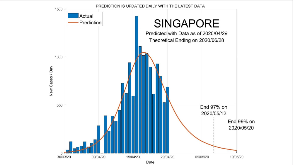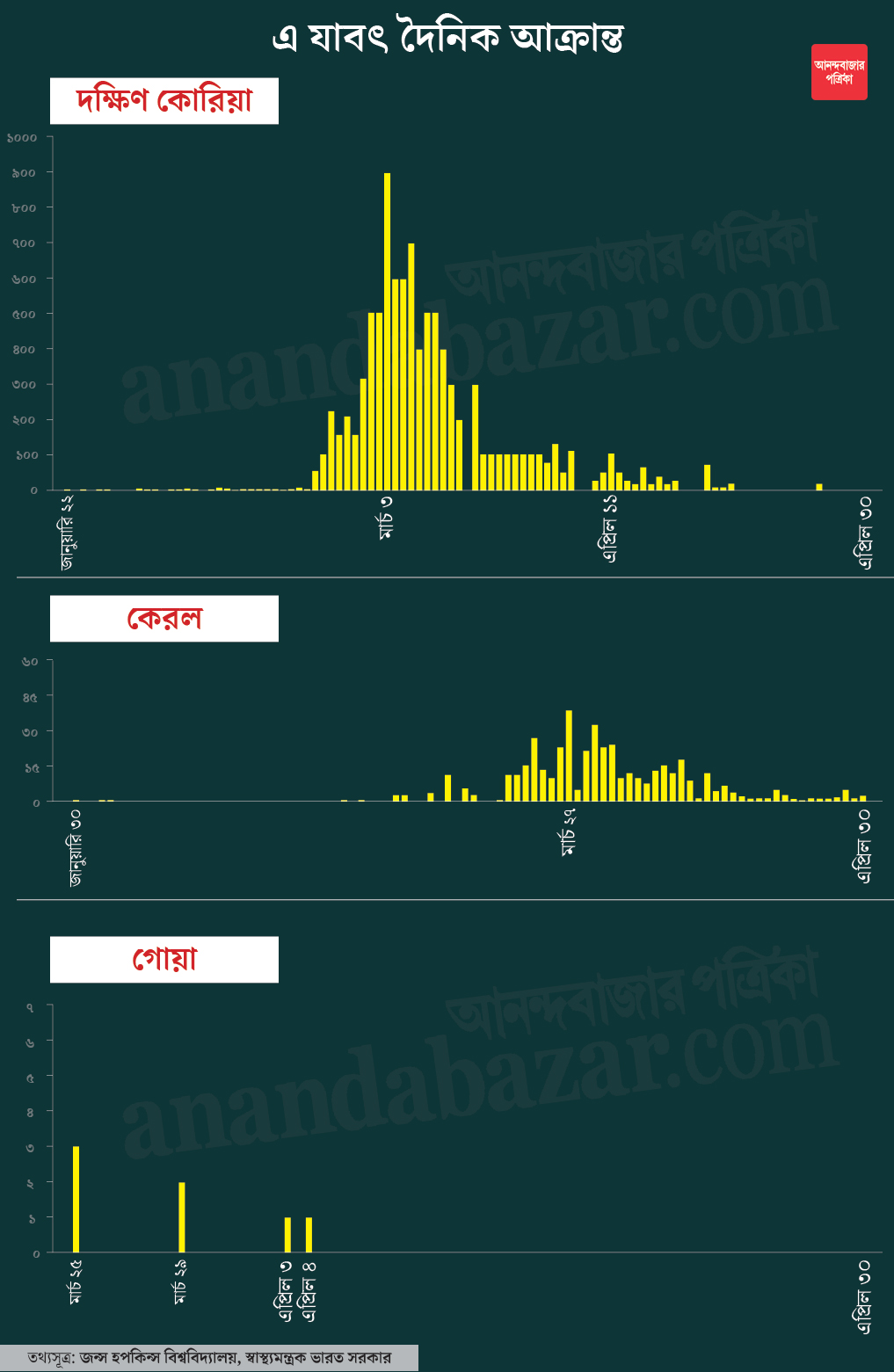 এখানে বলা হচ্ছে মে মাসের প্রথম বা দ্বিতীয় সপ্তাহেই নাকি সিঙ্গাপুরে সংক্রমণের মাত্রা কমে যাবে অনেকটা আর জুনের দশ তারিখের মধ্যে সে দেশ সংক্রমণমুক্ত। অন্য দিকে সিঙ্গাপুরে থাকা সহকর্মীদের কাছ থেকে খবর পাচ্ছি যে— সে দেশের প্রশাসকেরা অত্যন্ত সতর্ক এবং এই ধরণের ভবিষ্যৎবাণীর ওপর নির্ভর করে সে দেশে লকডাউন উঠে সব কিছু স্বাভাবিক হওয়ার সম্ভাবনা অত্যন্ত কম। এই সমস্ত ভুলে আমাদের বরং নজর রাখা ভাল দক্ষিণ কোরিয়া এবং নিজেদের দেশের মধ্যে কেরালা আর গোয়ার দিকে। সংক্রমণ মুক্তির উপায় শিখতে গেলে এই জায়গাগুলোই আপাতত সঠিক পথ দেখাবে।