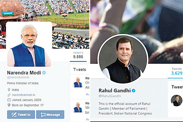 সক্রিয়: নরেন্দ্র মোদী ও রাহুল গাঁধীর টুইটার অ্যাকাউন্ট। সোশ্যাল মিডিয়ায় দু’জনেই দক্ষ
