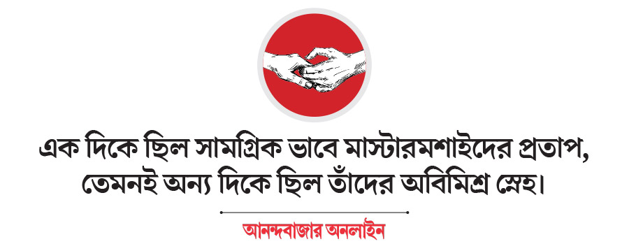 ভয়ে! কড়া শাস্তির ভয়ে। আড়ংধোলাইয়ের ভয়ে। টিসি (ট্রান্সফার সার্টিফিকেট) খাওয়ার ভয়ে। বাড়ি থেকে বাবা-মা’কে ডেকে পাঠিয়ে জানানোর ভয়ে। সেই ভয়ের পিছনে যেমন এক দিকে ছিল সামগ্রিক ভাবে মাস্টারমশাইদের প্রতাপ, তেমনই অন্য দিকে ছিল তাঁদের অবিমিশ্র স্নেহ।