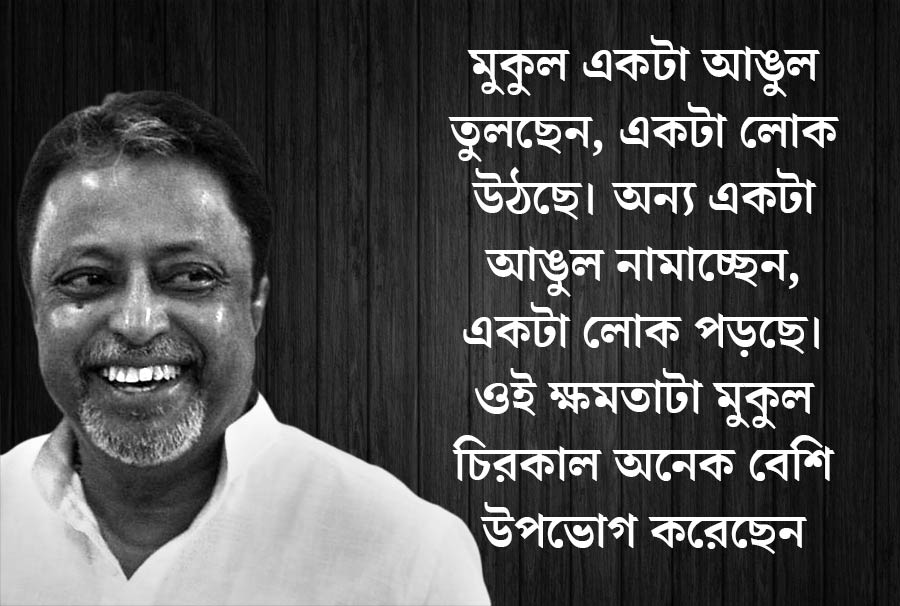 মুকুলের নাম শুনলেই বরাবর কল্পনায় একটা ছবি ভেসে আসত। তিনি একটা সোফায় বসে আছেন। মুখে মুচকি হাসি। হাতের দশ আঙুলে দশটা সুতো বাঁধা। সেই সুতোর অপরপ্রান্তে দশটা লোক পুতুলের মতো ঝুলছে। মুকুল একটা আঙুল তুলছেন, একটা লোক উঠছে। অন্য একটা আঙুল নামাচ্ছেন, একটা লোক পড়ছে। ওই ক্ষমতাটা মুকুল চিরকাল অনেক বেশি উপভোগ করেছেন। বিচক্ষণ মুকুল জানতেন, তিনি জননেতা নন। ভোট-টোট জেতা তাঁর দ্বারা হবে না। ২০০৬ সালে জগদ্দল বিধানসভা কেন্দ্রে ভোটে দাঁড়িয়েছিলেন। ফরওয়ার্ড ব্লকের হরিপদ বিশ্বাসের কাছে হেরে যান। এবং আবার বুঝে যান, তিনি অনেক বেশি স্বচ্ছন্দ পর্দার পিছনে। সংগঠনে। দলের রান্নাঘরে। রাজনীতির পরিভাষায় যাকে বলে ‘কিচেন ক্যাবিনেট’। তফাত একটাই, এ ক্যাবিনেটে সদস্য মাত্র দু’জন। মমতা এবং তিনি।