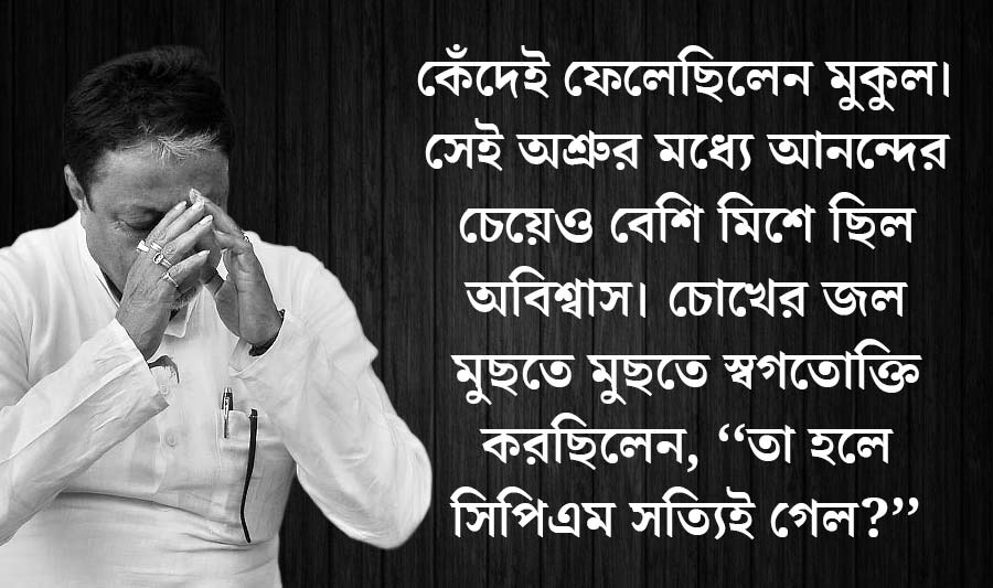 তৃণমূলে মমতার পরেই একচ্ছত্র ক্ষমতার অধিকারী ছিলেন মুকুল। সে অধিকার মমতাই তাঁকে দিয়েছিলেন। তখন দশটার মধ্যে অন্তত আটটা বিষয়েই মমতার নির্ভরশীলতা ছিল মুকুলের প্রতি। যে কোনও ঘটনা বা সিদ্ধান্তের ক্ষেত্রে মমতা বলতেন, ‘‘মুকুল, দেখে নিয়ো।’’ অনুগত বশংবদের মতো মুকুল ঘাড় নাড়তেন। নিয়মিত তৃণমূল ভবনে যেতেন। মন দিয়ে সংগঠন করতেন। কখনও কোনও সংসদীয় বা পরিষদীয় পদ চেয়েছেন বলে শুনিনি। দূরদূরান্ত থেকে আগত সমস্ত কর্মীর সঙ্গে দেখাসাক্ষাৎ করতেন। তাঁদের কথা বিশদে শুনতেন। অনেককে নামেও চিনতেন। সময়-অসময়ে ফোন করলে নিজেই ধরতেন। কোনওদিন এক ছটাকও বিরক্ত হতে দেখিনি। একদিন ছাড়া প্রকাশ্যে আবেগতাড়িতও হতে দেখিনি। ২০১১ সালে বিধানসভা ভোটের ফলাফল প্রকাশের পর মমতার চিলতে অফিসঘরে দাঁড়িয়ে ঝরঝর করে কেঁদেই ফেলেছিলেন মুকুল। সেই অশ্রুর মধ্যে আনন্দের চেয়েও বেশি মিশে ছিল অবিশ্বাস। চোখের জল মুছতে মুছতে স্বগতোক্তি করছিলেন, ‘‘সিপিএম তা হলে সত্যিই গেল?’’