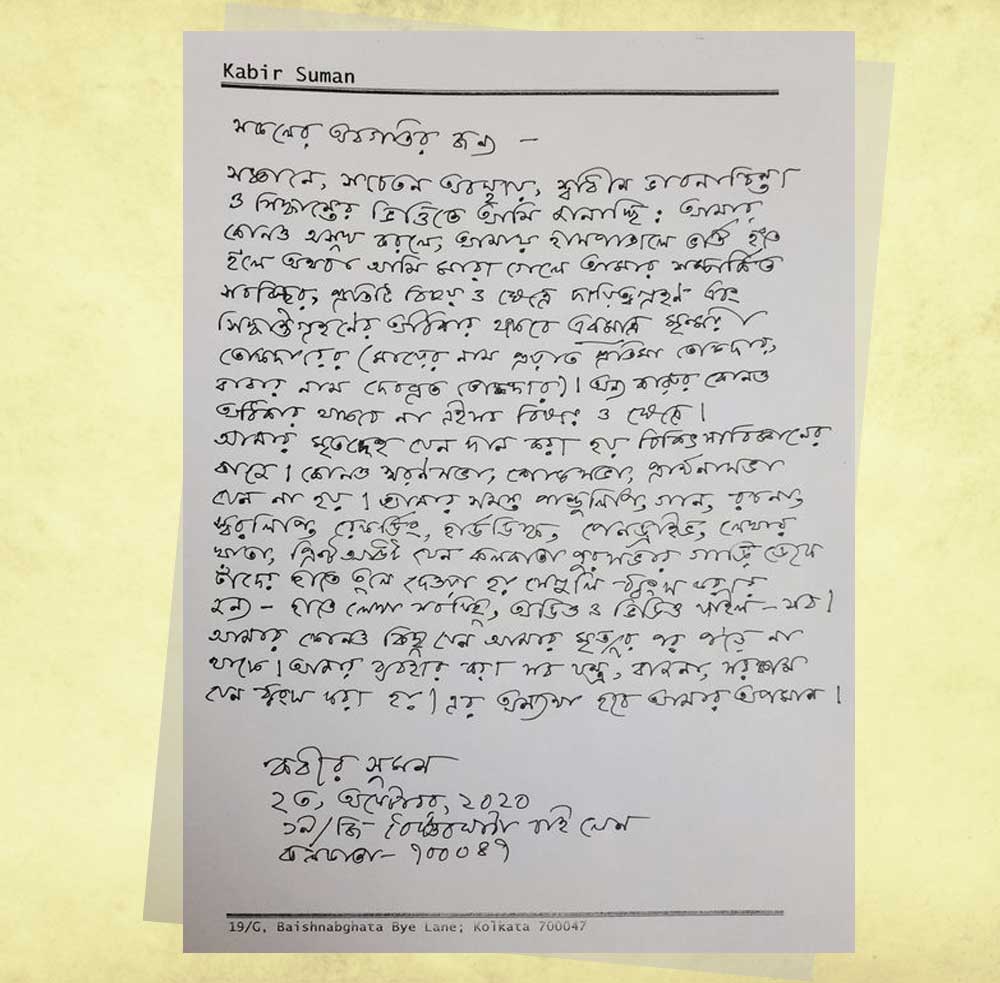 ফেসবুকে পোস্ট করা কবীর সুমনের ইচ্ছাপত্র।