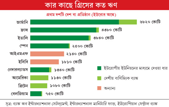কেন দ্বিতীয় বিশ্বযুদ্ধোত্তর জার্মানির ঋণের সিংহভাগ মকুব করে দেওয়ার সিদ্ধান্ত করেছিল মিত্রশক্তি, সে আলোচনা আপাতত থাক। তবে মনে রাখা ভাল, আজকের ইউরোপের সবচেয়ে বড় মহাজন জার্মানিকে সে দিন শুধু মানবিকতার স্বার্থে মিত্রশক্তির অন্য দেশগুলির সঙ্গে গ্রিসও ঋণ পরিশোধের দায় থেকে মুক্তি দিয়েছিল। ইতিহাসের বিচিত্র গতি, আজ সেই গ্রিস মানবিকতারই দোহাই দিয়ে পরিত্রাণ প্রার্থনা করছে জার্মানির কাছে, এবং অ্যাঙ্গেলা মার্কেল সেই আবেদন শুনেও না শুনে রয়েছেন।