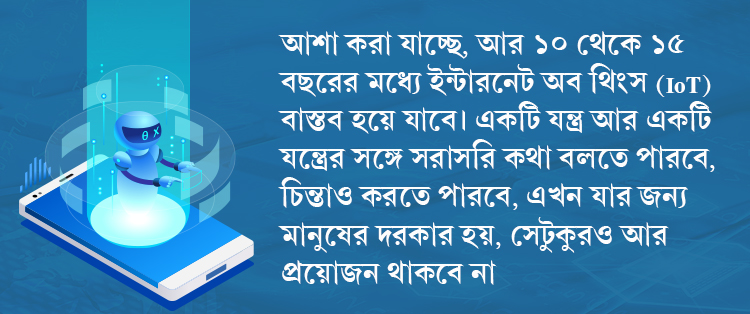 ফলে চতুর্থ শিল্প বিপ্লবটির জন্য আমাদের আরও ১০০ বছর আর অপেক্ষা করতে হবে না। আশা করা যাচ্ছে, আর ১০ থেকে ১৫ বছরের মধ্যে ইন্টারনেট অব থিংস (IoT) বাস্তব হয়ে যাবে। একটি যন্ত্র আর একটি যন্ত্রের সঙ্গে সরাসরি কথা বলতে পারবে, চিন্তাও করতে পারবে, এখন যার জন্য মানুষের দরকার হয়, সেটুকুরও আর প্রয়োজন থাকবে না।