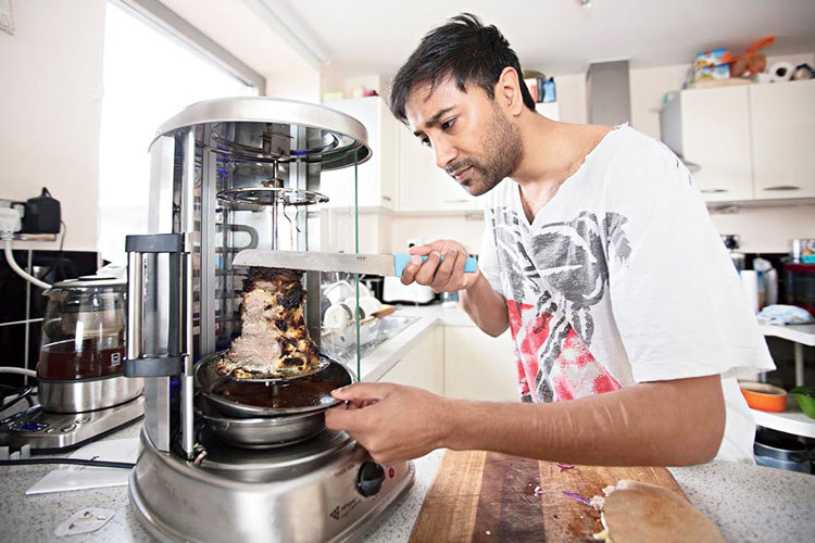মগ্ন: ঋক সমাদ্দার। কাজ করছেন কাবাব তৈরির যন্ত্র নিয়ে