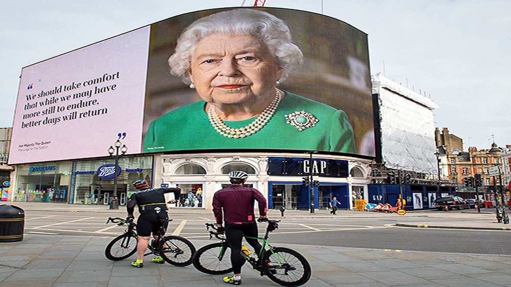 সুদীর্ঘ রাজত্বে প্রথম বার পিকাডিলি সার্কাসে দেখা গেল রানি দ্বিতীয় এলিজাবেথকে। পিকাডিলির বিখ্যাত আলোয় ভেসে উঠল রানির বিশাল ছবি। করোনা আর কত আশ্চর্য করবে আমাদের!