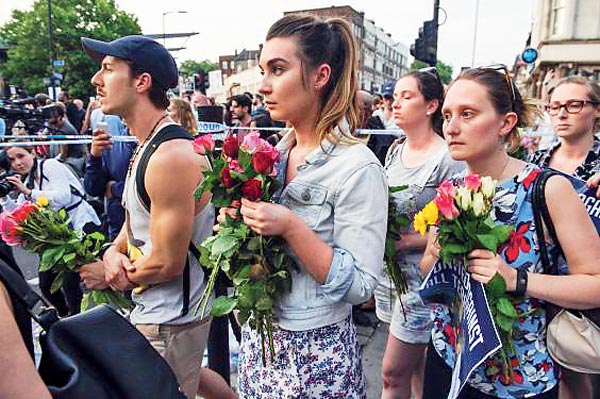 এমন দৃশ্য আগে কেউ দেখেননি। উত্তর লন্ডনের ফিন্সবেরি পার্ক মসজিদের গেটে শয়ে শয়ে মানুষ, সবার হাতে গোলাপের গুচ্ছ। সবাই স্থানীয় অ-মুসলিম, মসজিদে প্রার্থনায় আসা মুসলিম মানুষের হাতে তুলে দিচ্ছিলেন গোলাপগুলো। ফেজ টুপি আর লম্বা সাদা পোশাক পরা এক জন লোকের হাতে যেমন ফুলের তোড়া তুলে দিলেন শর্টস-টপ পরা অল্পবয়সি একটি মেয়ে। চব্বিশ ঘণ্টাও হয়নি, রমজানের উপবাস ভঙ্গের পর মসজিদ-ফেরত মুসলিমদের ওপর দিয়ে একটি লোক তার গাড়ি চালিয়ে দেয়। সে দিন গোলাপেরাই হয়ে উঠেছিল ভরসা আর সংহতির প্রতীক। গোলাপি, হলদে, সাদা, লাল গোলাপের সমুদ্র— যেন বহুবর্ণ, বহুভাষী লন্ডন! সন্ধের আলোয় চকচক করছিল সবার মুখগুলো। ফিন্সবেরি পার্ক স্টেশনে একটা বোর্ডে লেখা, ‘কঠিন সময় বেশি ক্ষণ থাকে না, থেকে যায় দৃঢ়চেতা মানুষগুলোই। একসঙ্গে থাকুন। সব্বাই।’ পাতাল রেলের এক যাত্রী টুইট করেছিলেন লেখাটা। মুহূর্তে ভাইরাল।