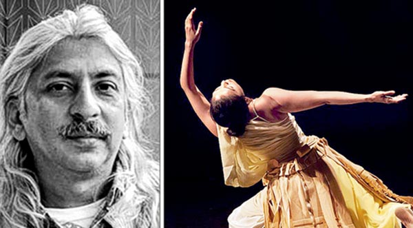 সংগঠক: সঞ্জয় রায়। ডান দিকে, মাজুলি নৃত্য পরিবেশনায় শিল্পী। ছবি: দর্শন মানাক্কল।