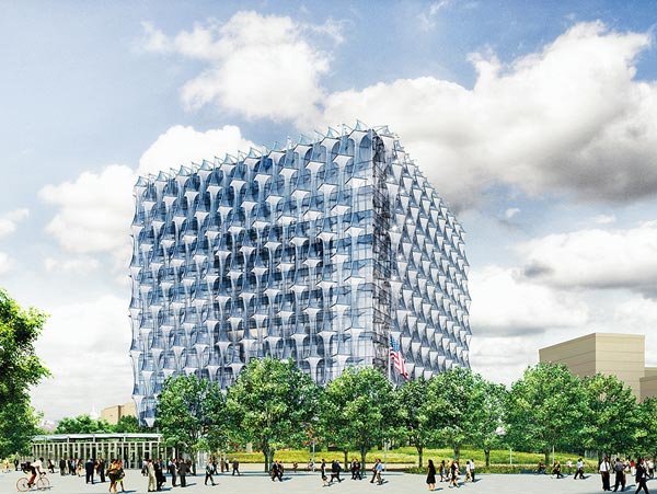ঠিকানা: লন্ডনের নাইন এল্‌মস-এ মার্কিন দূতাবাস কার্যালয়
