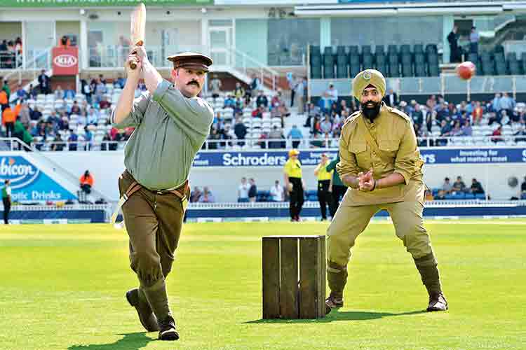 রোজ রোজ তো আর প্রথম বিশ্বযুদ্ধের পোশাকে কোনও শিখ সৈন্যকে ক্রিকেটের ব্যাট হাতে খেলার মাঠে দেখা যায় না! তাও আবার উল্টো দিকে তখন বল করছে এক ইংরেজ, তারও পরনে সেনা-ইউনিফর্ম! গত রোববার যাঁরা ওভাল-এ ভারত-ইংল্যান্ড টেস্ট ম্যাচ দেখতে গিয়েছিলেন, তাঁরাই দেখলেন এমন ঘটনা। মধ্যাহ্নভোজের বিরতিতে ‘ফিফটিন্‌থ লুধিয়ানা শিখস’ ও ‘রয়্যাল ম্যাঞ্চেস্টার রেজিমেন্ট’-এর মধ্যে হওয়া ‘ওয়ার্ল্ড ওয়ার ওয়ান’ ম্যাচটির পুনর্নির্মাণ ঘটল, দর্শকেরা সবাই হাততালি দিয়ে বাহবা জানালেন। ম্যাচে জিতল শিখ রেজিমেন্ট, একপ্রস্থ ভাংড়া নেচে জয় উদ্‌যাপনও করল। বিশ্বযুদ্ধের চার বছরে অবসর সময়ে মন ভাল রাখতে ভারতীয় ও ব্রিটিশরা যে ক্রিকেট-ফুটবল খেলত, সে কথা সুবিদিত। ভারতীয়রা খেলত কবাডি, কুস্তি, খো-খো’র মতো খেলাও। প্রথম বিশ্বযুদ্ধের প্রজন্মের স্মরণে রবিবারের এই ক্রীড়ানুষ্ঠানের আয়োজক ছিল সারে কাউন্টি ক্রিকেট ক্লাব, দ্য রয়্যাল ব্রিটিশ লিজিয়ন এবং ন্যাশনাল আর্মি মিউজ়িয়াম। বিশ্বযুদ্ধে ভারতের অবদান স্মরণে ভারত ও ইংল্যান্ড দুই দলের ক্যাপ্টেন বিরাট কোহালি ও জো রুট পরেছিলেন খাদির তৈরি বিশেষ ব্যাজ।