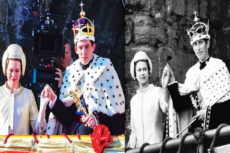 যুগল: ‘দ্য ক্রাউন’ সিরিজ়ে অলিভিয়া কোলম্যান ও জোশ ও’কনর। ডান দিকে, রানি দ্বিতীয় এলিজ়াবেথ ও যুবরাজ চার্লস