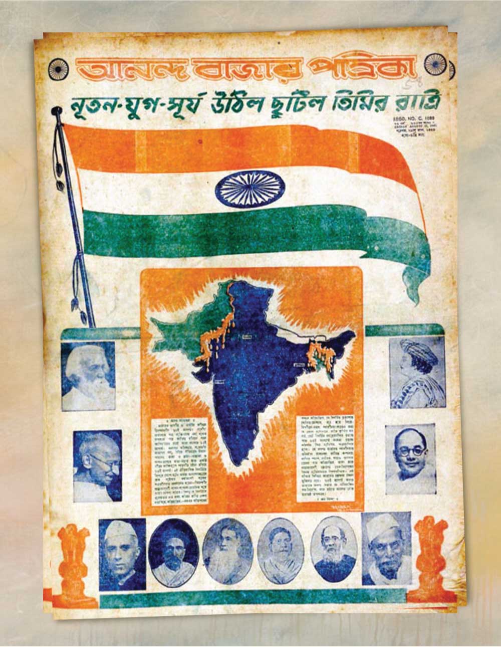 স্বাধীনতার প্রথম দিনে আনন্দবাজার পত্রিকার প্রথম পৃষ্ঠা ছিল এমনই।
