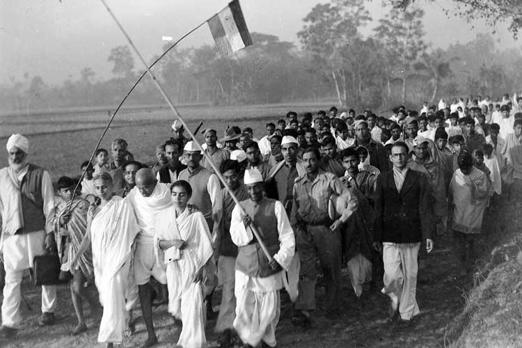 অনুগামীদের সঙ্গে গাাঁধী।