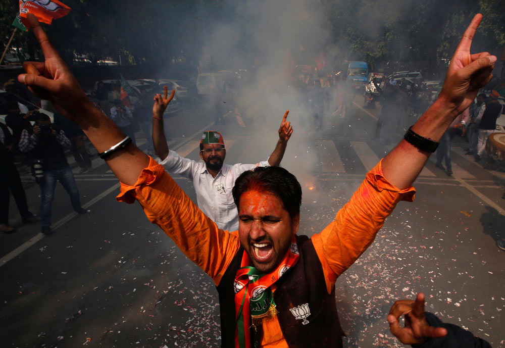 জয়ের আনন্দে মাতোয়ারা বিজেপি সমর্থকরা। ফাইল চিত্র।