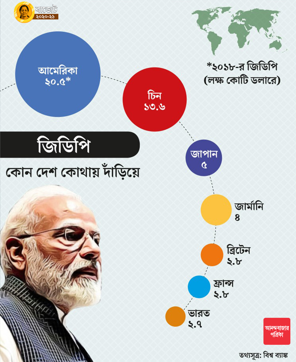 এ বার বাজেট এমন একটা সময় হচ্ছে যখন দেশের অর্থনীতি এক ভয়ানক অনিশ্চয়তার মধ্য দিয়ে যাচ্ছে। আইএমএফের পূর্বাভাস অনুযায়ী চলতি অর্থবর্ষে ভারতের বৃদ্ধি হবে ৪.৮ শতাংশ যা অক্টোবরের পূর্বাভাস অনুযায়ী ছিল ৬.১ শতাংশ। চলতি আর্থিক বছরের এপ্রিল থেকে নভেম্বর মাসের মধ্যে শিল্পোৎপাদন সূচক বৃদ্ধির গড় হার দাঁড়িয়েছে ০.৬ শতাংশ। ২০১৮-১৯ আর্থিকে বছরের এই সময়ে যা ছিল ৫ শতাংশ।