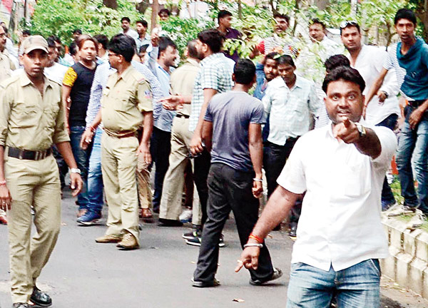 পুলিশের সামনেই চলেছে শাসানি। — নিজস্ব চিত্র।