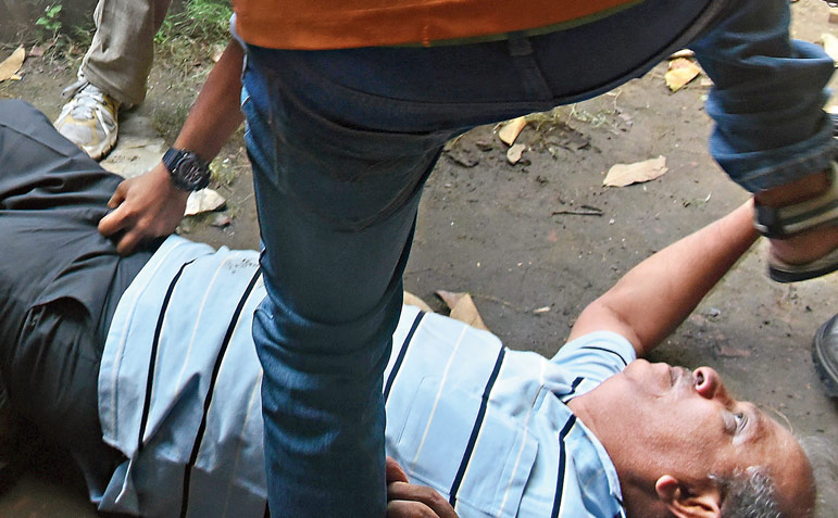 ৬৭ বছরের বৃদ্ধকে রাস্তায় ফেলে চলে বেধড়ক মারধর। সল্টলেকে। — নিজস্ব চিত্র