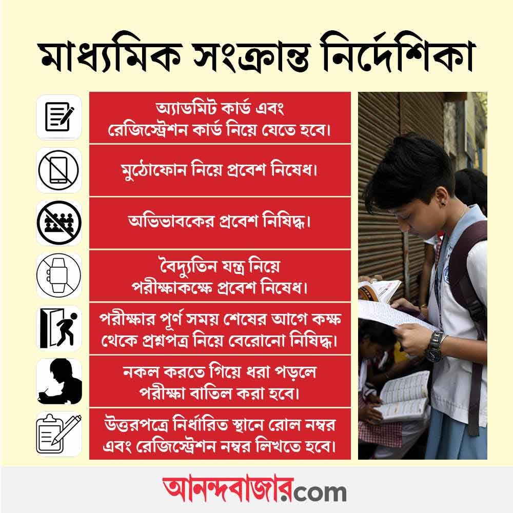 ২। পরীক্ষাকেন্দ্রের ভিতরে কোনও অভিভাবকের প্রবেশ নিষিদ্ধ।