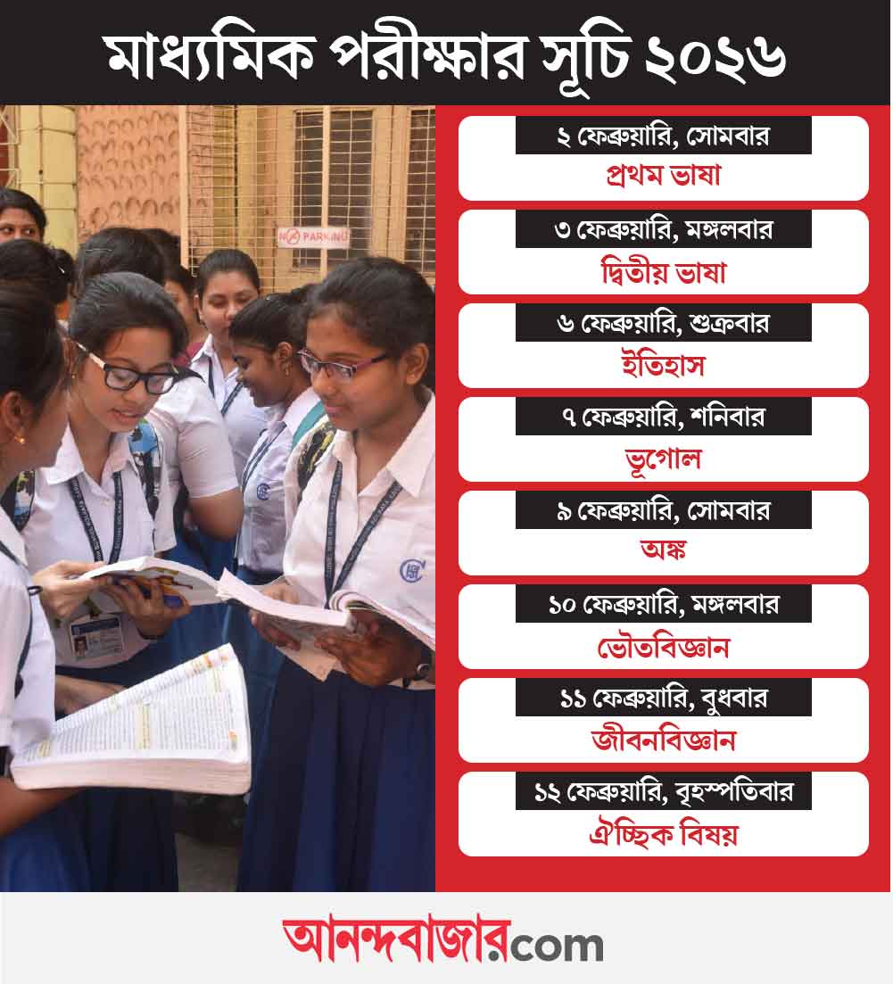 আগামী বছর বিধানসভা নির্বাচন। তাই ফেব্রুয়ারিতেই পরীক্ষা হবে কি না, তা নিয়ে সংশয় ছিল। তবে সব দিক বিবেচনা করে ‘২৬-এর পরীক্ষা এক সপ্তাহ এগিয়ে আনা হল। এ বছর পরীক্ষা শুরু হয়েছিল ১০ ফেব্রুয়ারি। পরের বছর শুরু হবে ২ ফেব্রুয়ারি।