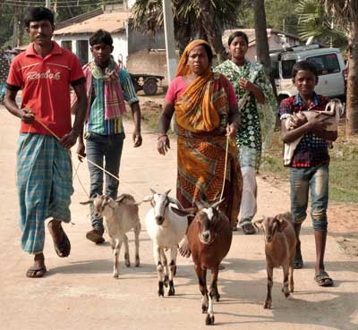 গবাদি পশুকে নিয়ে গ্রাম ছাড়ছেন মাখড়ার বাসিন্দারা। ছবি বিশ্বজিত্ রায়চৌধুরী।