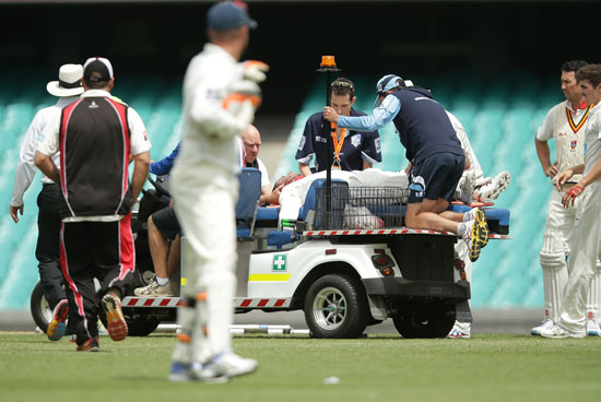 হচ্ছে আহত হিউজকে। ছবি: গেটি ইমেজেস।