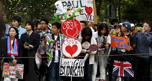 সঙ্গীত বিশ্বের এই প্রবাদপ্রতিম রক-ব্যান্ড প্রায় ৫০ বছর আগে টোকিও শহরের ‘নিপ্পন বুডোকান’ খোলা মঞ্চে পারফর্ম করেন। মঙ্গলবার আরও এক বার ‘দ্য বিটলস’-এর সেই রেশ টেনে আনলেন পল ম্যাককার্টনি। ৭২ বছরের গায়কের গলায় এই প্রথম বার মঞ্চে শোনা গেল ‘অ্যানাদার গার্ল’! টোকিওবাসীকে তাক লাগিয়ে কয়েক মুহূর্তের জন্য ম্যাককার্টনি ফিরিয়ে এনেছিলেন সেই চারমূর্তিকে।