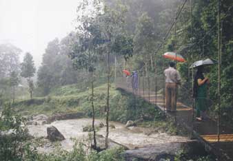 এমনিতে কালিম্পং মহকুমার মধ্যে পড়ে সুনতালেখোলা। কিন্তু, আলিপুরদুয়ার থেকেও খুব বেশি দূরে নয় এই পর্যটনকেন্দ্রটি। এই মুহূর্তে বন উন্নয়ন নিগমের আটটি কটেজ আছে এখানে। আছে দু’টি হনিমুন কটেজ এবং ২৮টি তাঁবু। চালসা পেরিয়ে সামসিং হয়ে সুনতালেখোলা পৌঁছতে হয়। এখানে যেমন চা-বাগান, পাহাড় রয়েছে, তেমনই মূর্তি নদী বা জঙ্গল এলাকাও খুব একটা দূরে নয়। কয়েক কিলোমিটারের মধ্যেই রয়েছে গরুমারা জাতীয় উদ্যান এবং চাপড়ামারি অভয়ারণ্য। সুনতালে মানে কমলালেবু এবং খোলার অর্থ নদী। সেই সুনতালে নদীর উপরের ঝুলন্ত ব্রিজ পেরিয়ে যেতে হয় বন উন্নয়ন নিগমের কটেজগুলিতে। ভুটান সীমান্তও এখান থেকে বেশ কাছে।